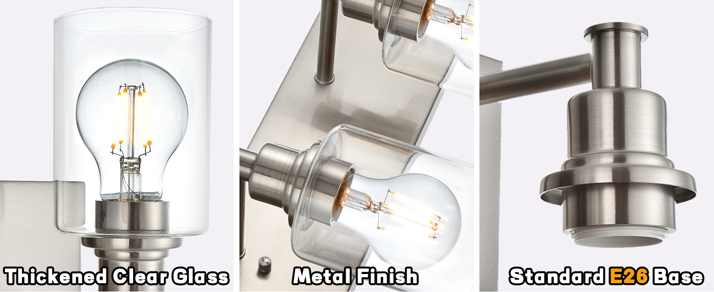 Finish and Style: Ensure the finish and style of the lighting fixtures complement the existing decor of your bathroom. Popular finishes include brushed nickel, chrome, and matte black.