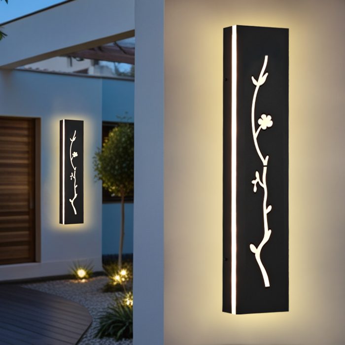 Elegant outdoor LED wall light with frosted acrylic and flower pattern. IP65 waterproof, dimmable, and available in 24–60 inch options for versatile use.