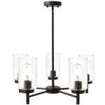 Elegant and Versatile Design: This modern pendant lighting collection is available in Black, Brushed Nickel, and Oil-Rubbed Bronze finishes, offering 1-light, 3-light, and 5-light options. Each fixture features a sleek metal frame paired with clear glass shades, adding a refined touch to your home décor. Whether placed in the kitchen, dining room, living room, or foyer, it brings both style and functionality to your space.