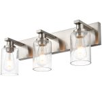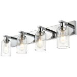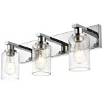 and finished in Black, Brushed Nickel, or Chrome, this vanity light series offers the flexibility to match any bathroom design or space size.