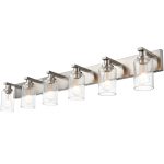 Elegant and durable modern bathroom vanity light with seeded glass shades. Available in multiple sizes and finishes to enhance any bathroom décor.