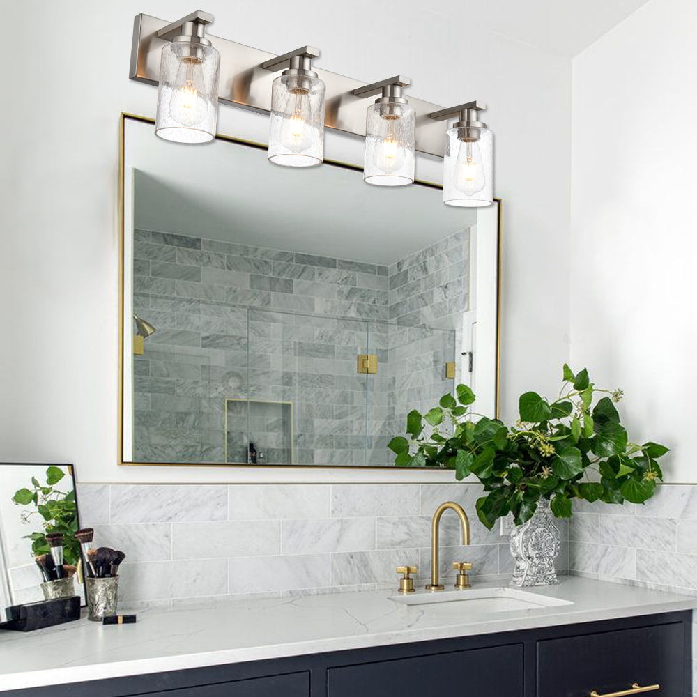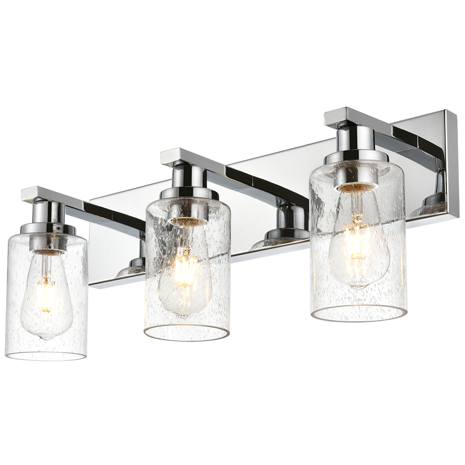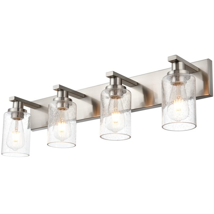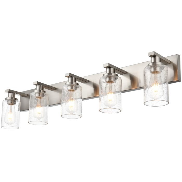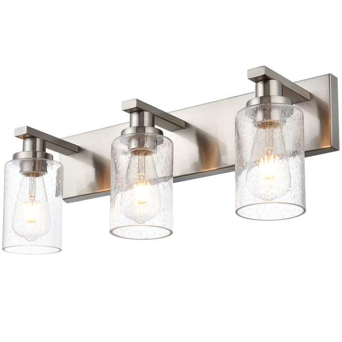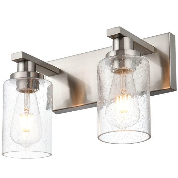Elegant and durable modern bathroom vanity light with seeded glass shades. Available in multiple sizes and finishes to enhance any bathroom décor.