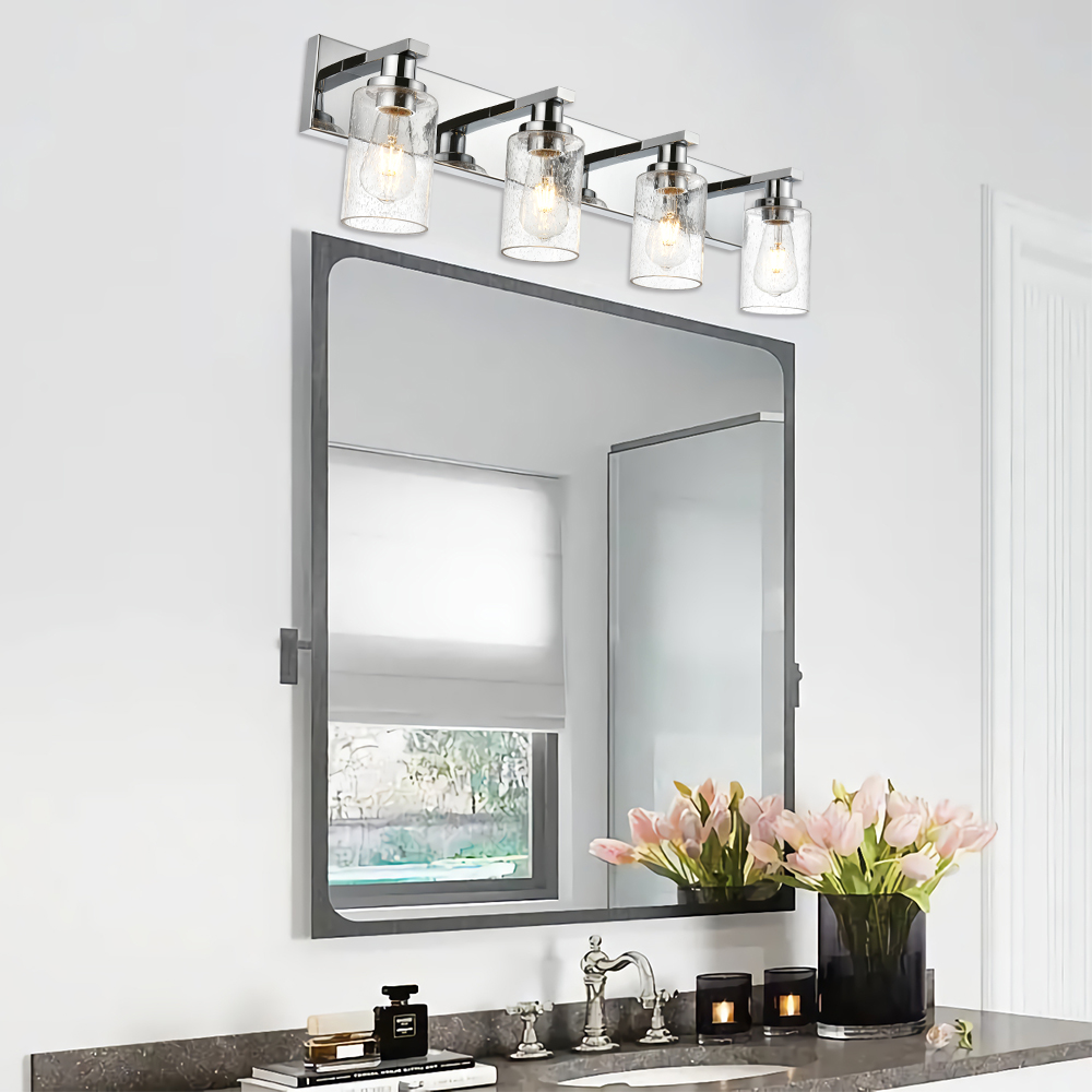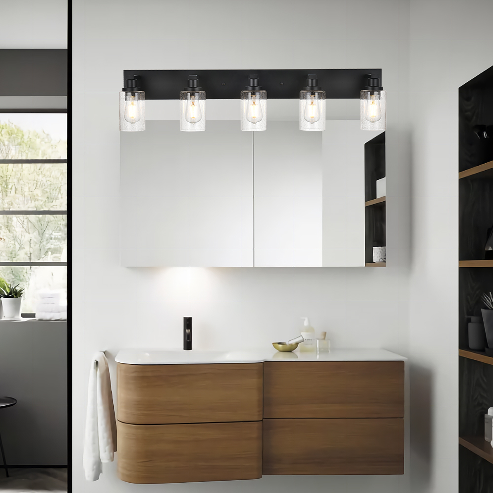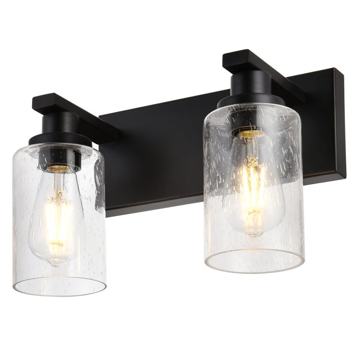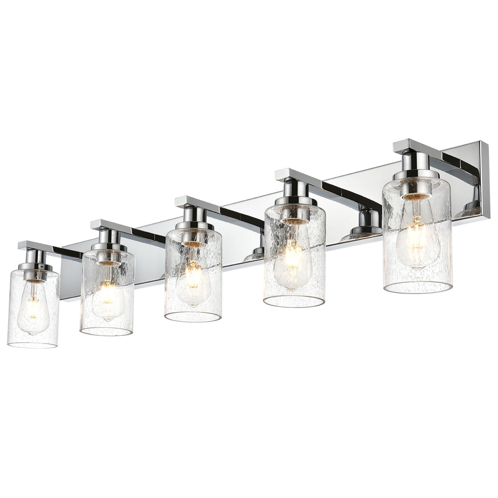 Elegant and durable modern bathroom vanity light with seeded glass shades. Available in multiple sizes and finishes to enhance any bathroom décor.