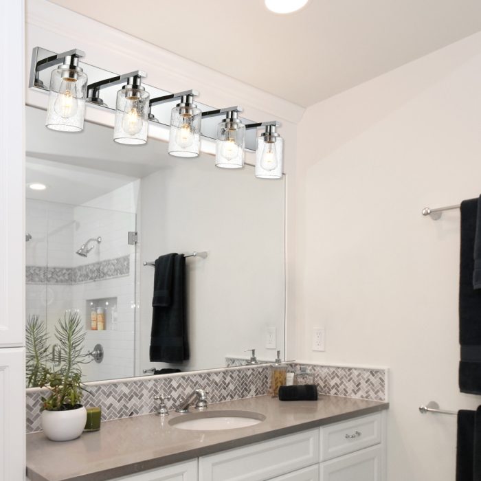 and finished in Black, Brushed Nickel, or Chrome, this vanity light series offers the flexibility to match any bathroom design or space size.