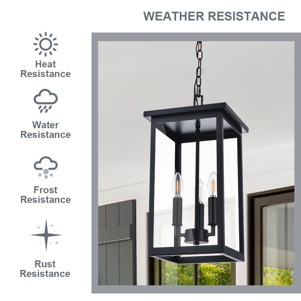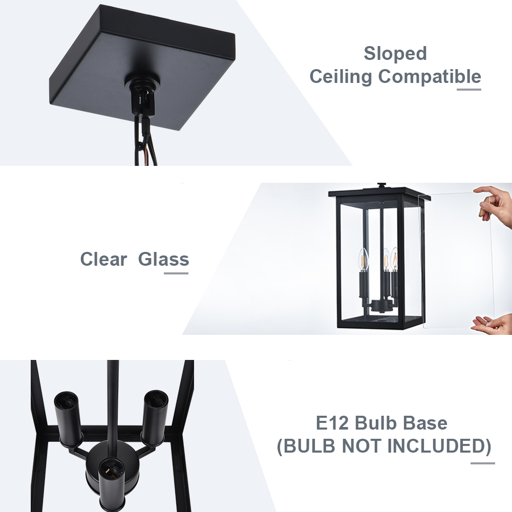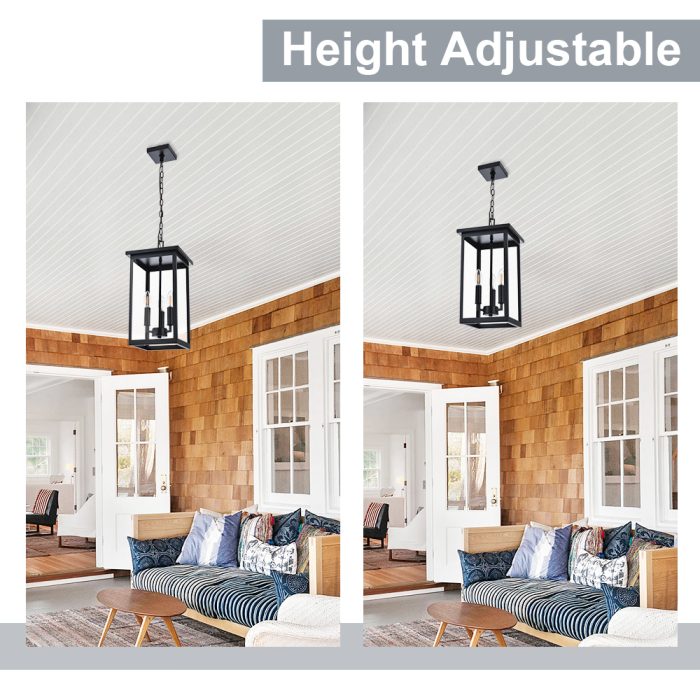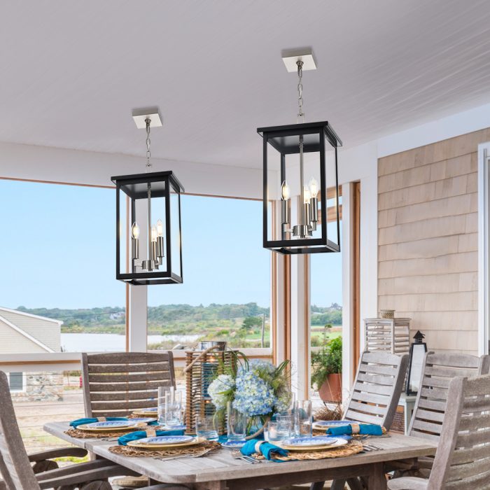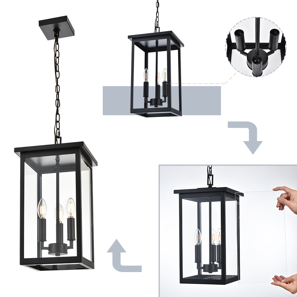 Featuring a simple metal frame paired with thick clear glass, it brings timeless sophistication to any space — whether illuminating your porch, patio, entryway, or dining area.